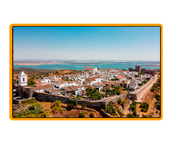 A vila de Monsaraz foi conquistada nos anos mouros, em 1167, por homenagem de Geraldo Sem Pavor. O primeiro foral foi concedido por D. Afonso III, em 15 de janeiro de 1276. O castelo de Monsaraz desempenhou durante dois séculos o papel de sentinela do Guadiana, guardando a fronteira com o Castelo. Em 2007 Monsaraz foi uma das finalistas da seleção das 7 Maravilhas de Portugal. O Castelo de Monsaraz, sobranceiro ao Rio Guadiana e ao moderno espelho aquático da Barragem de Alqueva, dominando a vila medieval e a fronteira com Espanha. A sua arquitetura militar mistura elementos medievais e do século XVI.